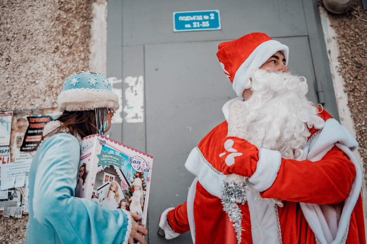 В Рождество Дед Мороз со Снегурочкой развезли участникам акции «Елка желаний» подарки от благотворителей.