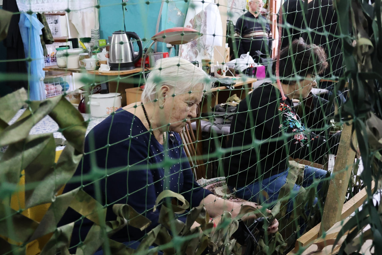 Волонтеры Двуреченского отделения «Сысерть своих не бросает» своими руками плетут маскировочные сети, подбирая цвет для каждого сезона. Особый вид сетей «городские развалины» изготавливаются для маскировки в городском ландшафте. Женщины шьют шерстяные пояса, быстросъемные подсумки для аптечек и бандажи для раненных. С любовью вяжут шерстяные носки для наших воинов, при этом вручную изготавливают нить из натуральной овечьей и собачьей шерсти. Заливают окопные свечи и спички длительного горения. Руководит отделением Галина Константинова. Основная часть волонтеров – это ветераны «серебряного» поколения, старшей из которых уже 89 лет.