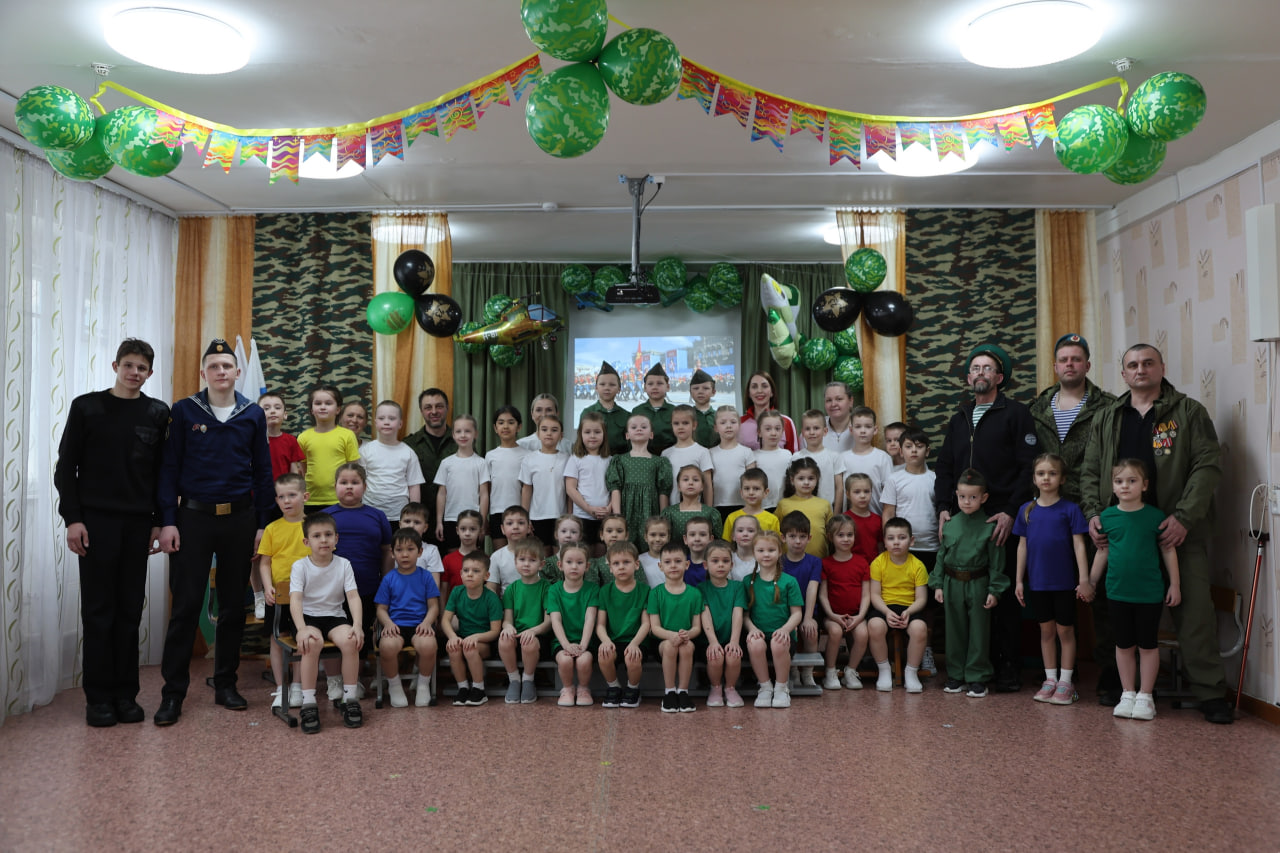 Почетными гостями мероприятия стали защитники нашего Отечества, выпускники детского сада, папы и дедушки воспитанников «Золотого ключика»: участник СВО Коба Джанелидзе, ветеран ВДВ Евгений Шатунов, пограничник Сергей Никулин, сотрудник Росгвардии Алексей Кадников, ученики Свердловского кадетского корпуса им. М.В.Банных Даниил Бровкин и Сергей Абдулаев.