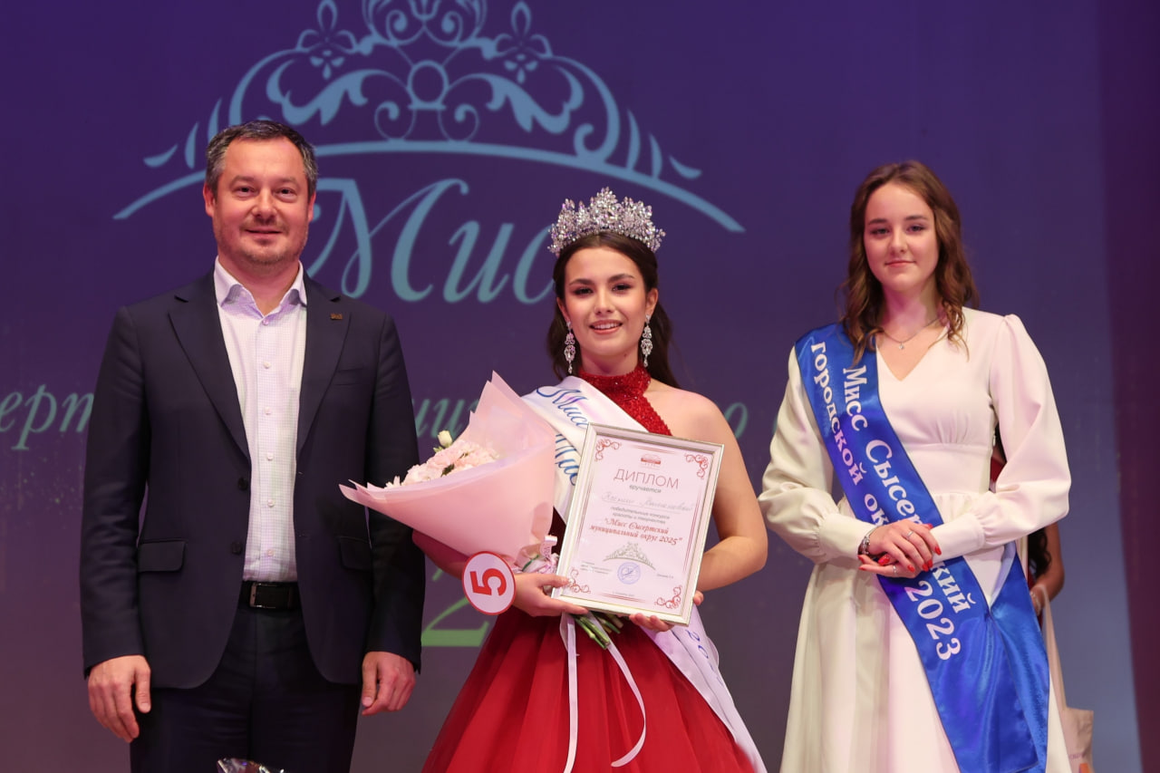 Диплом победителя конкурса «Мисс СМО 2025» Ксении Кашановой вручил глава Сысертского МО Дмитрий Нисковских. Короновала новоиспеченную мисс Дарья Ширыкалова, обладательница титула «Мисс СГО 2023».