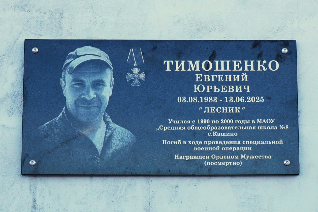 20 февраля в селе Кашино состоялось торжественное открытие мемориальной доски участнику Специальной военной операции Евгению Юрьевичу Тимошенко. Она установлена на здании школы №8.